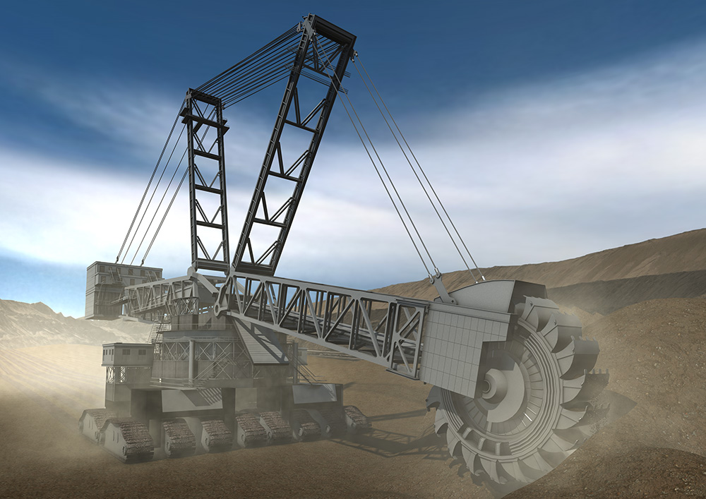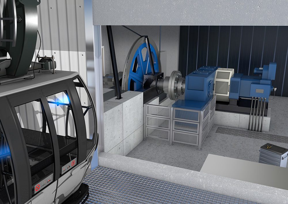 Baumer Heavy Duty Darstellung von Einsatzbereichen, in welchen robuste Sensoren benötigt werden. Bis auf Bagger und Gondel wurden alle Objekte anhand von geliefertem Bildmaterial komplett neu erstellt und die entsprechenden Szenen umgesetzt.