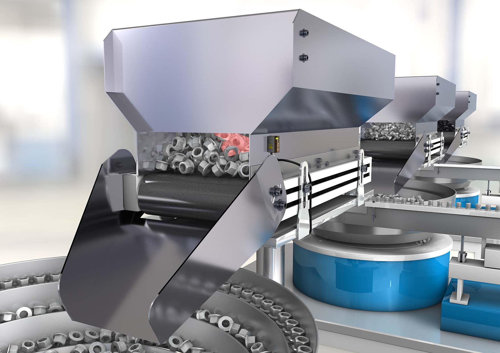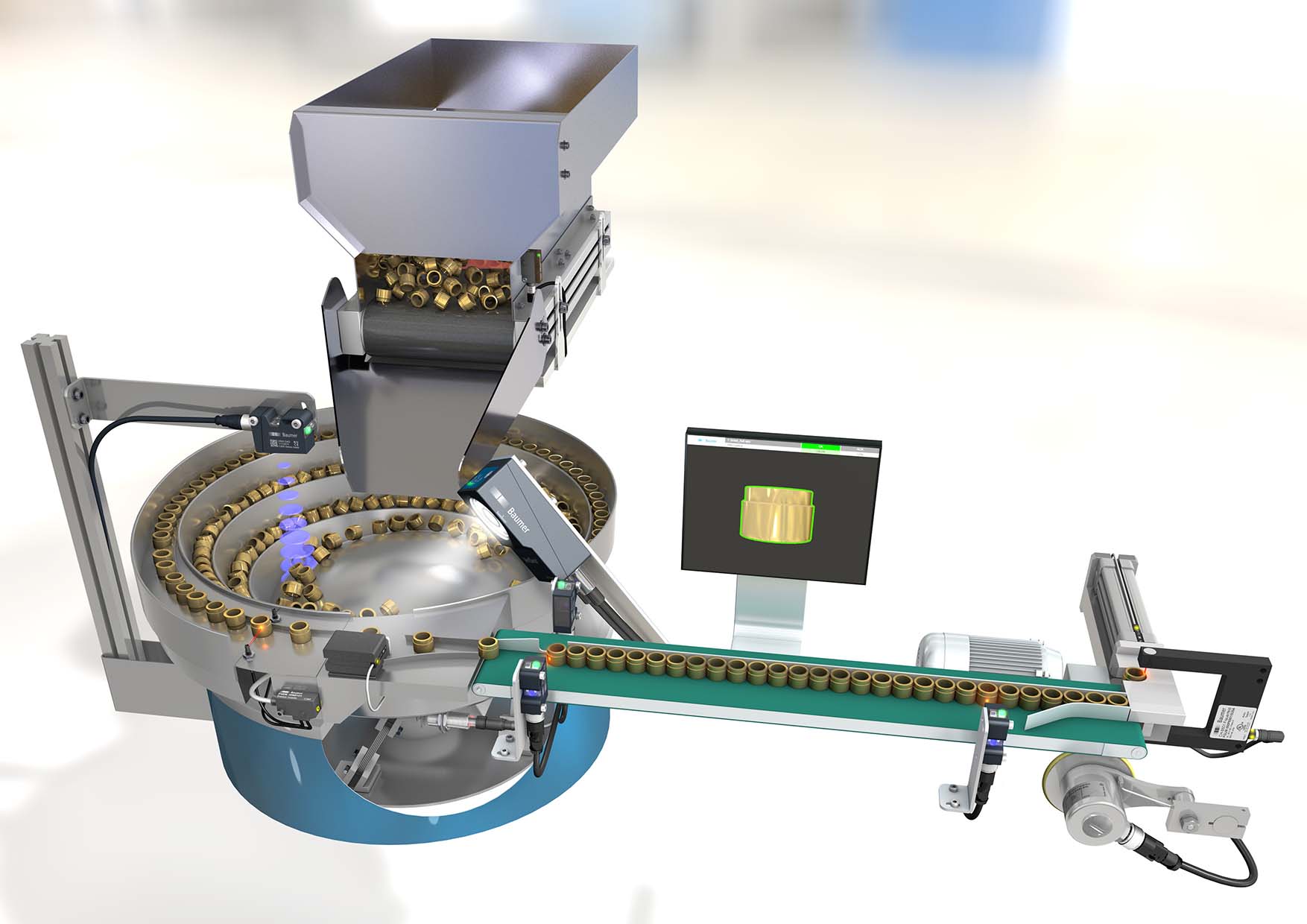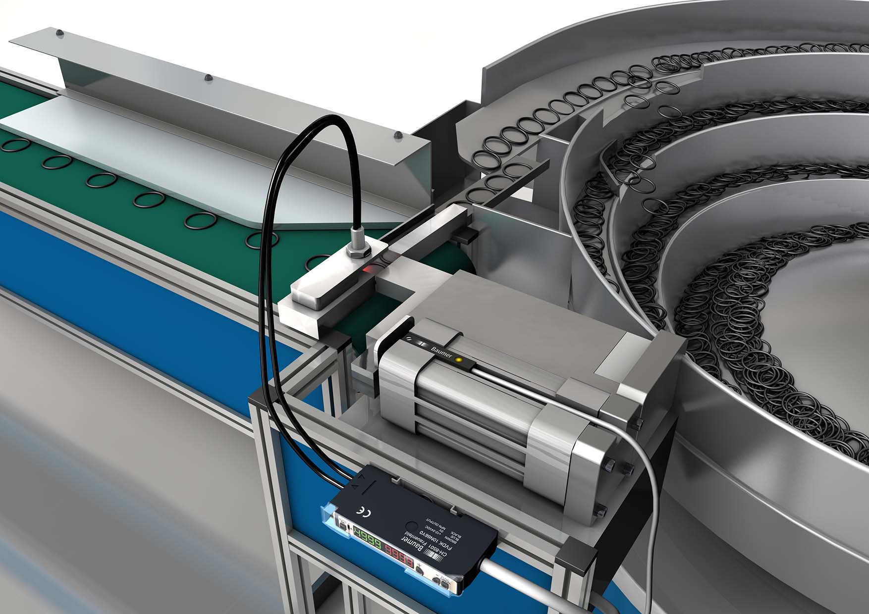 Baumer Vibrationsförderer Visualisierungen von Sensoren eingesetzt an diversen Stellen bei Vibrationsförderern.