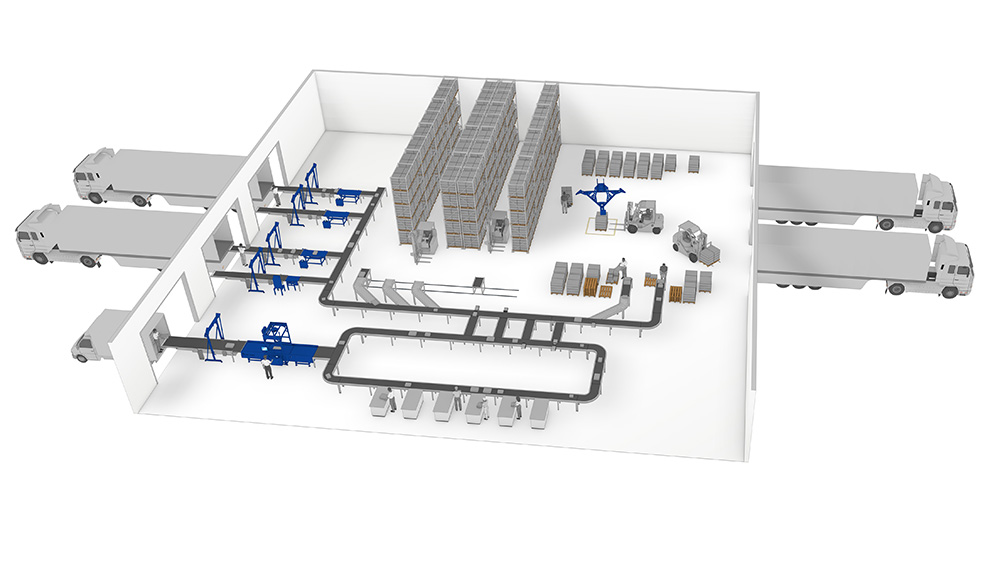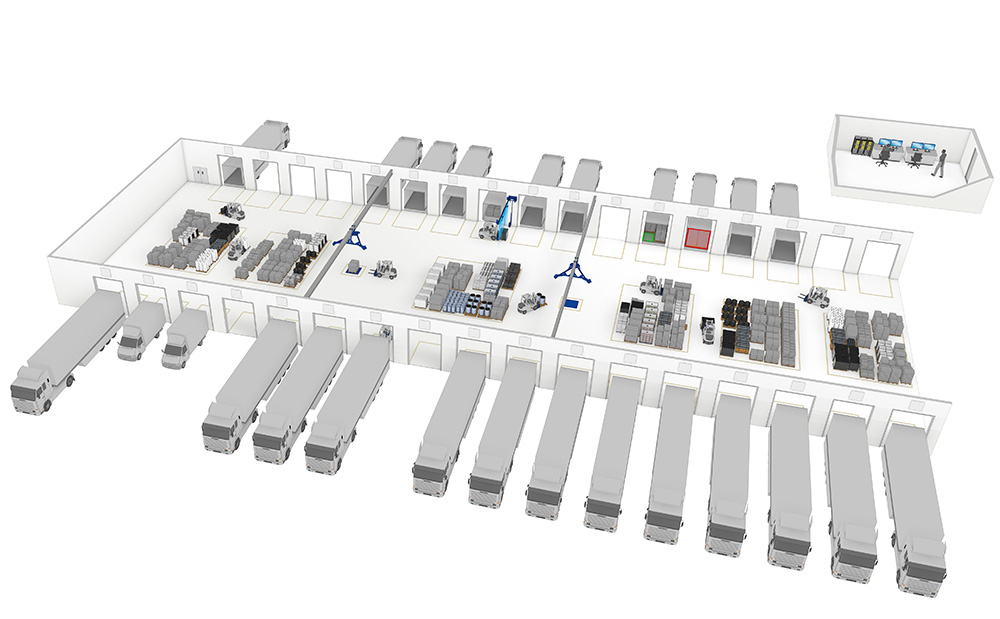 Mettler Toledo Chain Images Visualisierungen unterschiedlicher Lieferketten, eines Frachtdocks, eines Verteilzentrums und einer LKW-Waage. Die Umsetzungen orientieren sich an bestehendem Material und wurden anhand von Skizzen und geliefertem Bildmaterial umgesetzt.